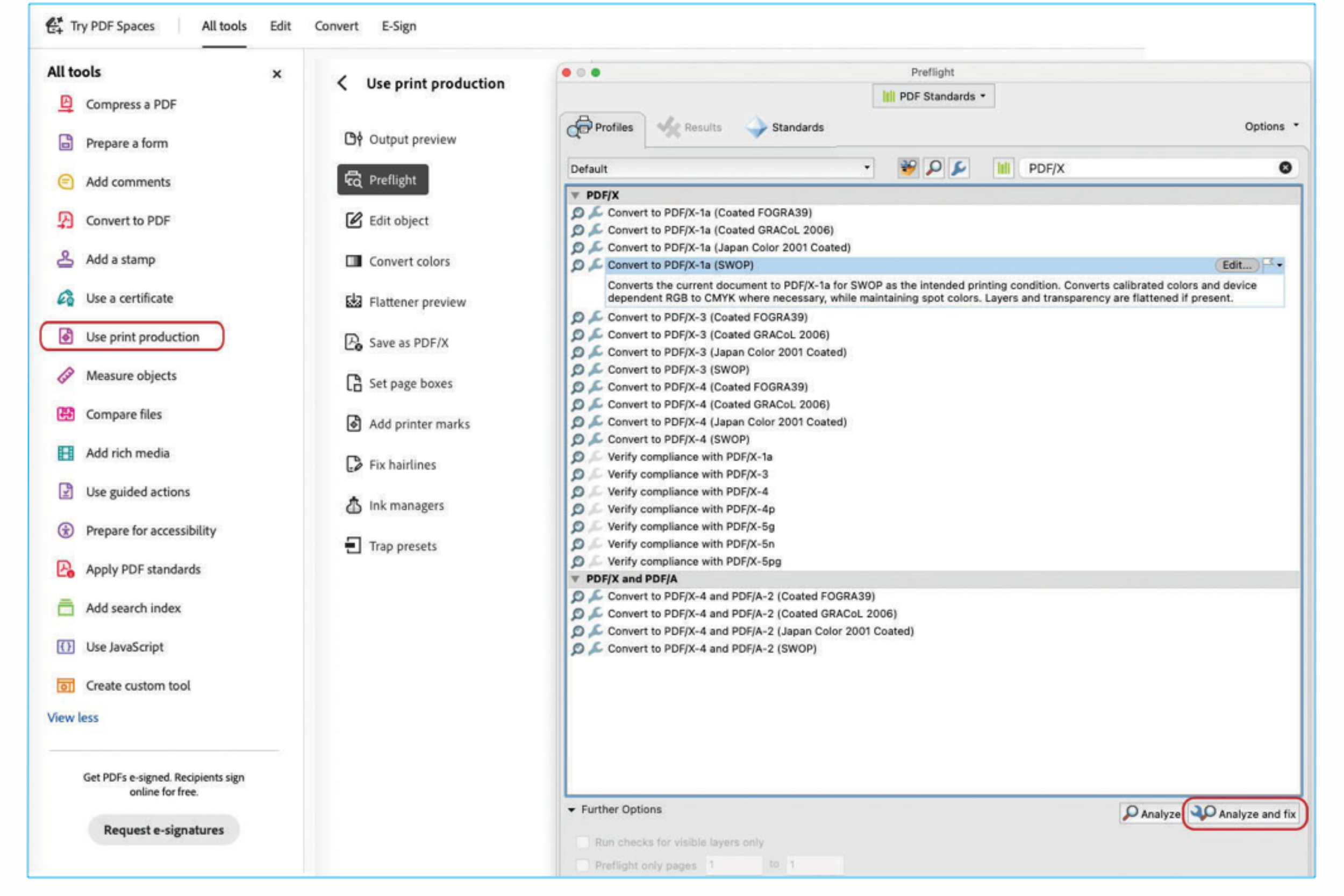 Choose Convert to PDF/X-1a